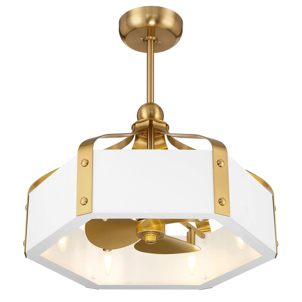 Contemporary / modern white with warm brass accents 6-light indoor ceiling fan with plastic shade