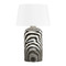 Contemporary / modern aged brass & ceramic cream shadow 1-light table lamp with white linen shade