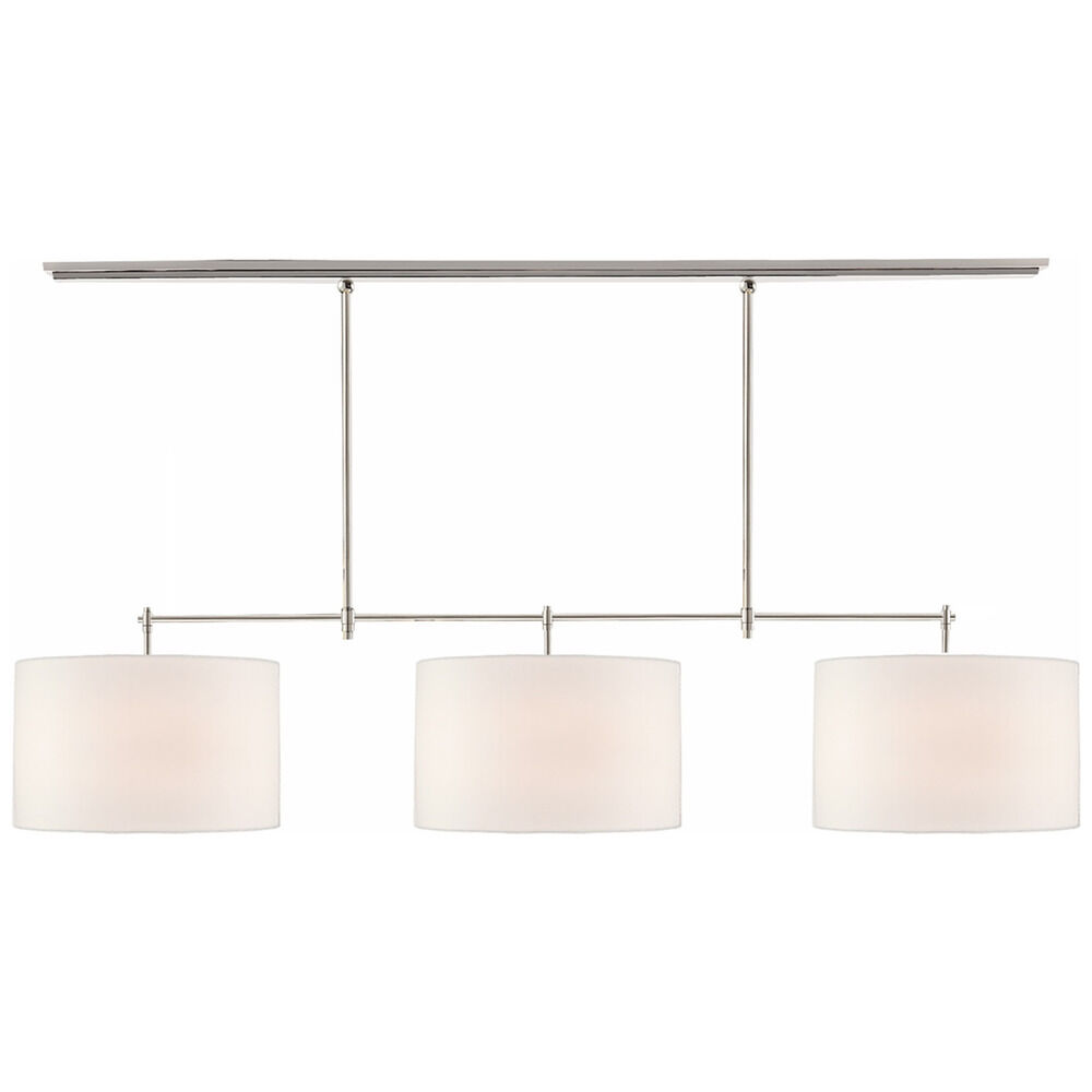 Illuminate your kitchen island, dining room table or pool table with Thomas O'Brien's Bryant Large Billiard Chandelier by Visual Comfort. The Bryant features a Polished Nickel finish and has Linen shades. This chandelier requires three 75W maximum medium base A19 light bulbs. LED bulbs are recommended. This fixture is rated for Dry Location only.