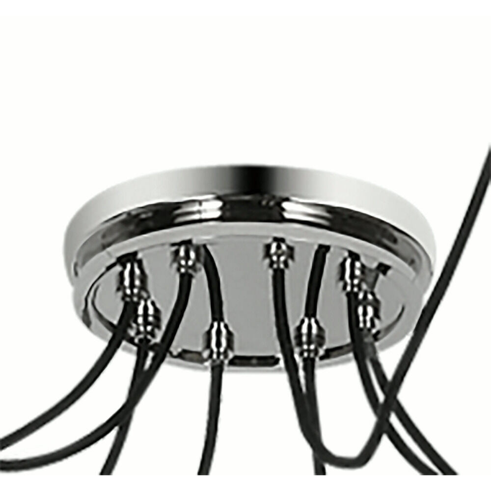 Modernize your dining room or living space with Thomas O'Brien's Junio Chandelier. This configurable chandelier features a main canopy that connects to the junction box, as well as other supports that anchor each of Junio's cables to the ceiling. At the end of each cable is a light socket and a frosted glass shade. LED bulbs sold separately.