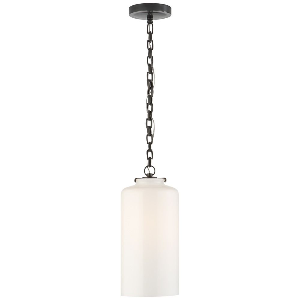 Thomas O'Brien's Katie Cylinder Pendant by Visual Comfort is the ideal addition to your kitchen island or peninsula. This simple pendant works very well with Farmhouse, Industrial and even Traditional-style homes. The Katie features a Bronze finish and a White, cylindrical glass. This fixture is chain hung, allowing for customization in hanging height. The Katie requires one 75W maximum medium base light bulb. This pendant is rated for Damp Location.