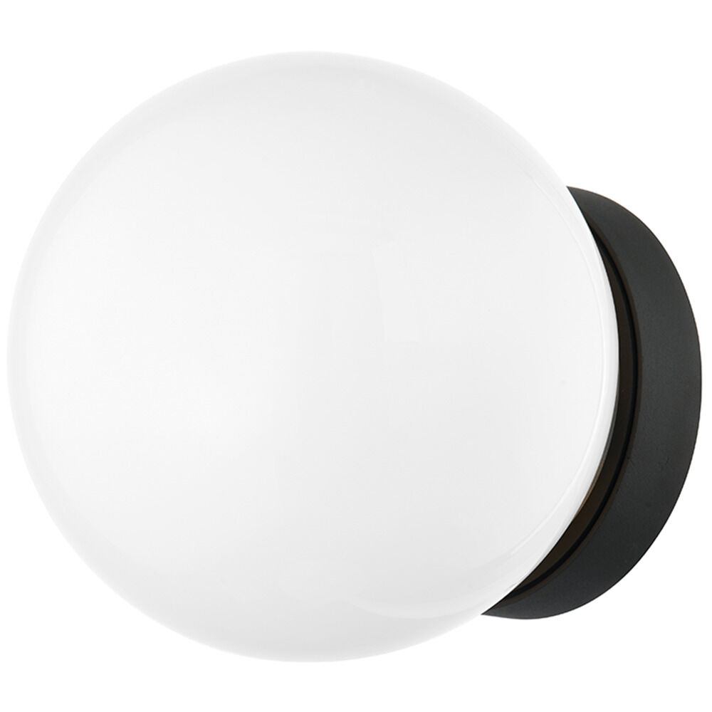 This highly usable fixture can be mounted on the wall or ceiling, indoors or out. With a backplate that nearly disappears from view when mounted, Ansel appears to float in midair. The textured black finish and opal shiny glass globe create a simple, elegant design that pairs with any style.