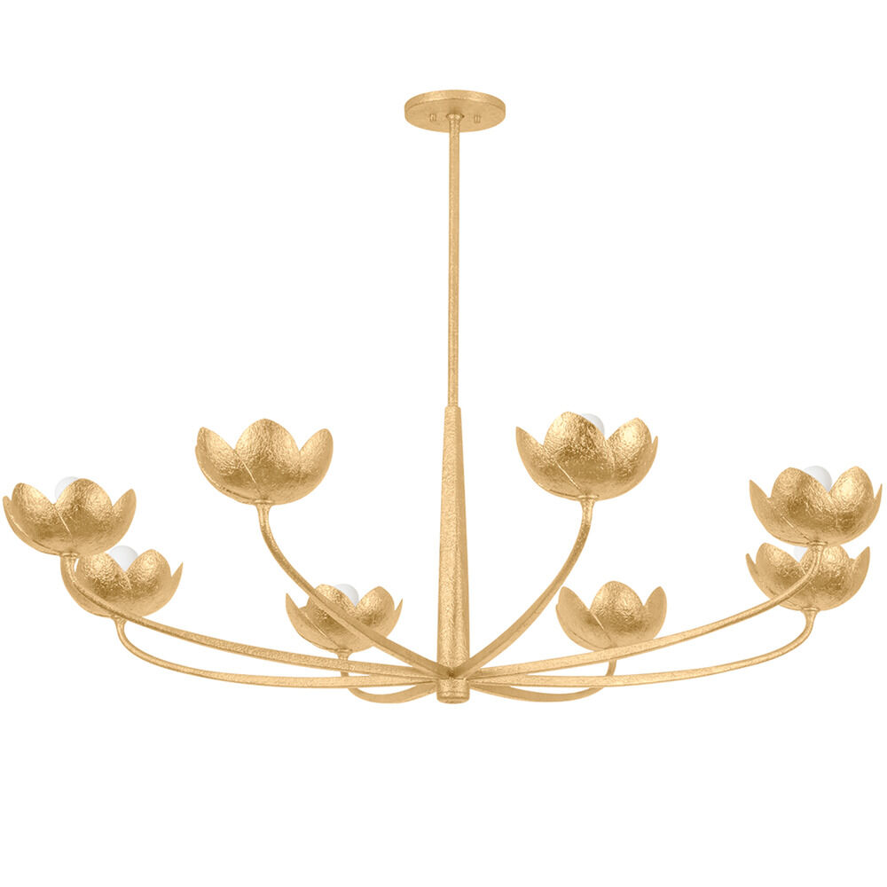 A fresh take on a botanic motif, the Arcata family features sculptural, romantic silhouettes with highly tactile, hand-worked finishes. The gentle sweeping arms transition from square to round, creating a dynamic look that complements the floral forms. Arcata is available as a 1-light sconce and 6 or 8-light chandeliers with the choice between contemporary Gesso White or a luxurious Vintage Gold Leaf finish.