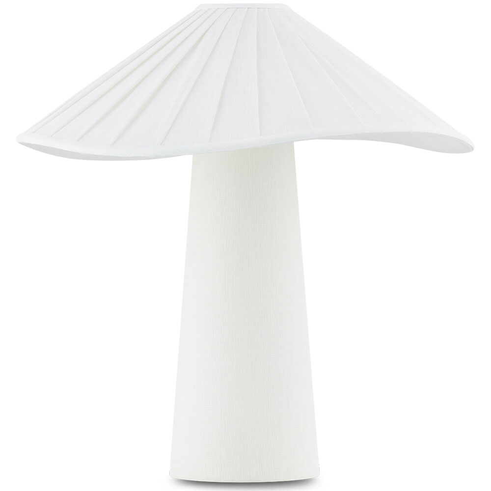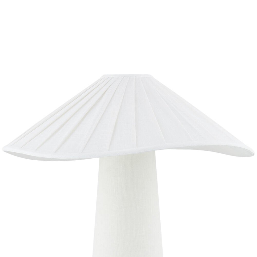 Chanterelle's pleated natural linen shade feels soft and fresh and the undulating edge adds sophistication and movement. The tapered base is also wrapped in natural linen, creating an allover linen materiality and clean monochromatic palette that makes this modern organic table lamp feel right on trend.