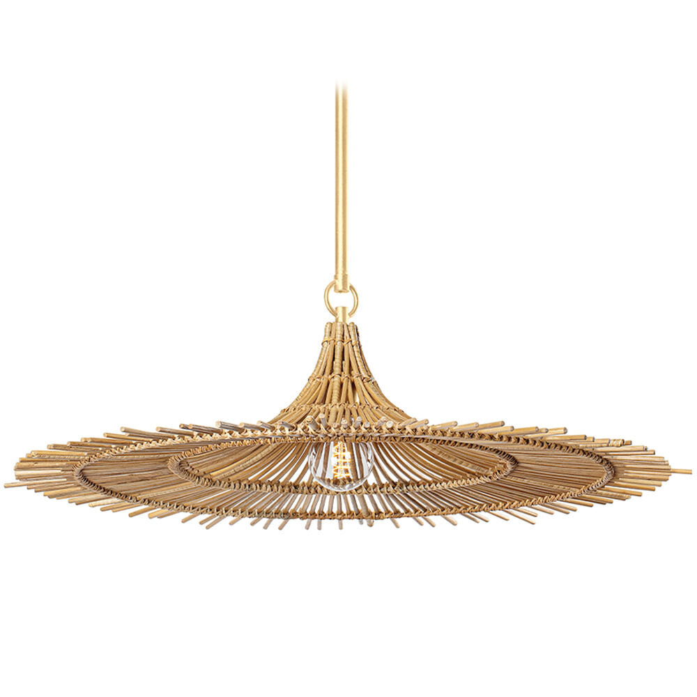 This sprawling rattan shade feels natural but makes a big statement. The irregular edging of the rattan enhances the rustic feel and the Vintage Gold Leaf finish adds subtle sophistication and a warm glow. Hang this one-light pendant over a dining table or in a larger living space to add a modern organic vibe. Due to the one-of-a-kind nature of the medium, exact colors and patterns may vary slightly from the image shown.