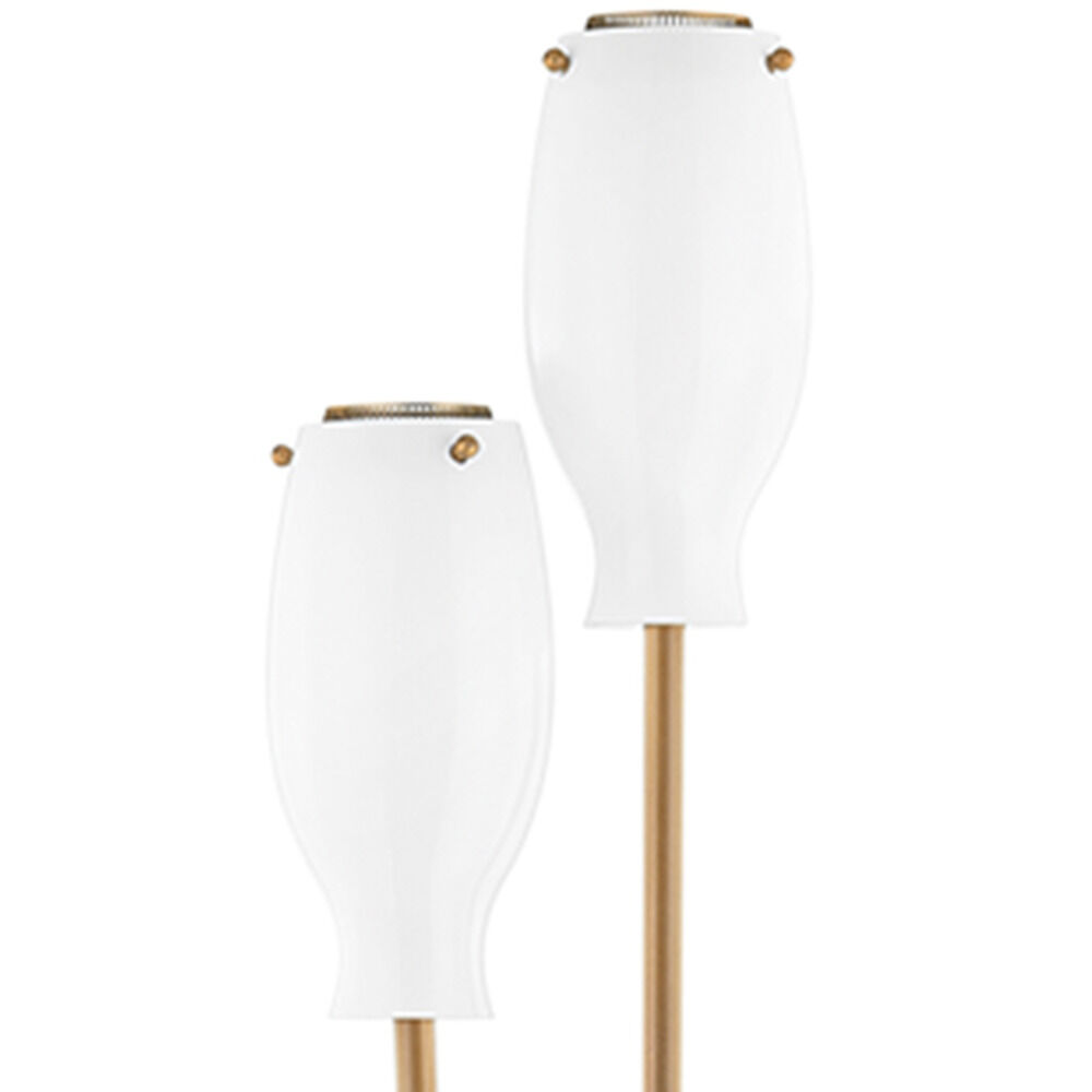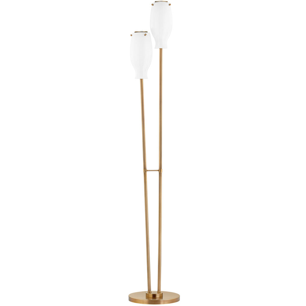 Drawing inspiration from the tall, reedy plants that grow in the marshland, Geyser wall sconce and floor lamp feature an elegant opal glossy glass shade, suspended on slender Patina Brass arms. The neutral tones, soft lines, and elevated organic feel make this mid-century-influenced design blend perfectly with many styles and color palettes.