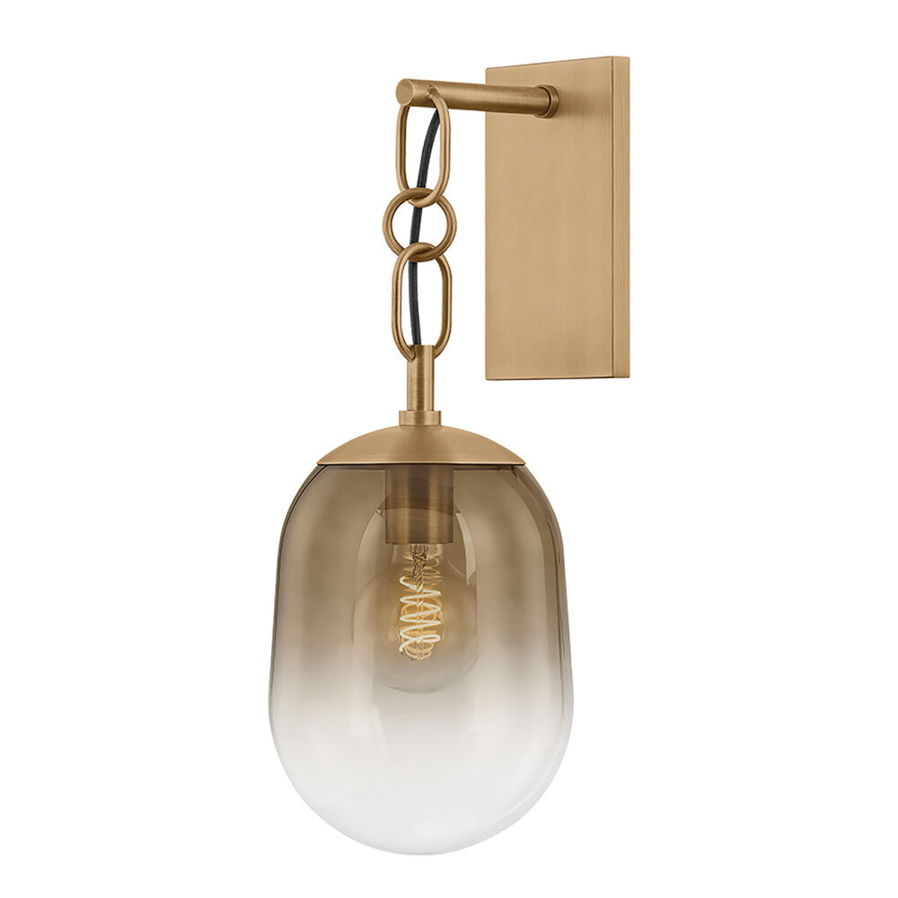 Contemporary / modern patina brass 1-light sconce with dark bronze ombre topaz glass shade