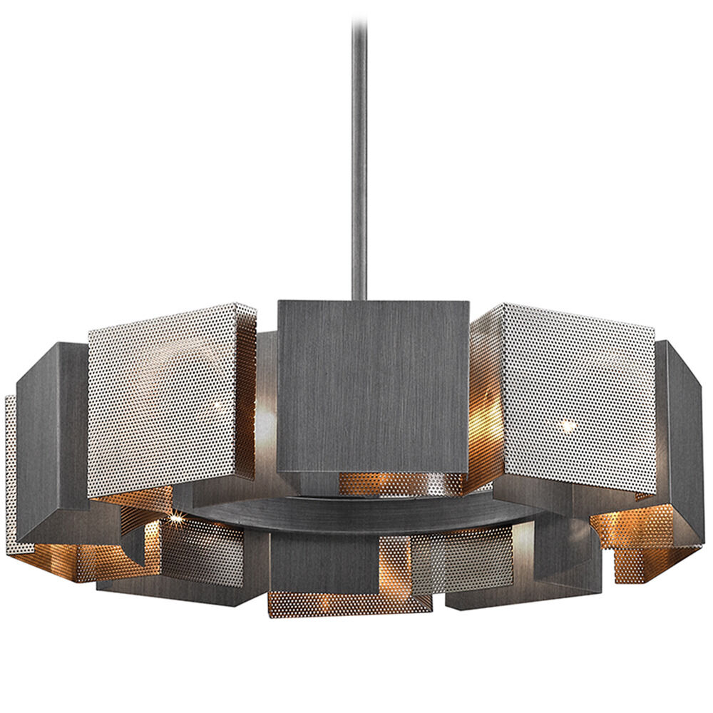 A graphite and brushed nickel combination lighting fixture offering industrial inspired styling with refined metallic contrast for modern interior spaces