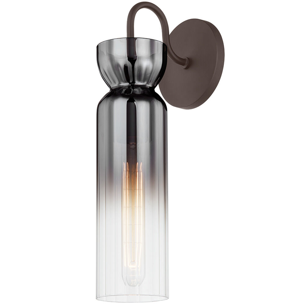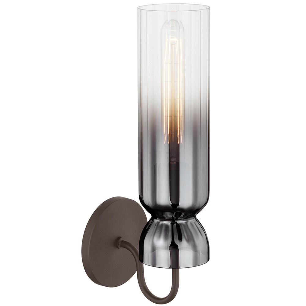 The shade of this modern, elegant hourglass-style sconce is made from a stunning ombre glass. A warm champagne or smoked grey at the top gradually transitions to clear glass, creating an eye-catching effect that looks gorgeous lit or unlit.