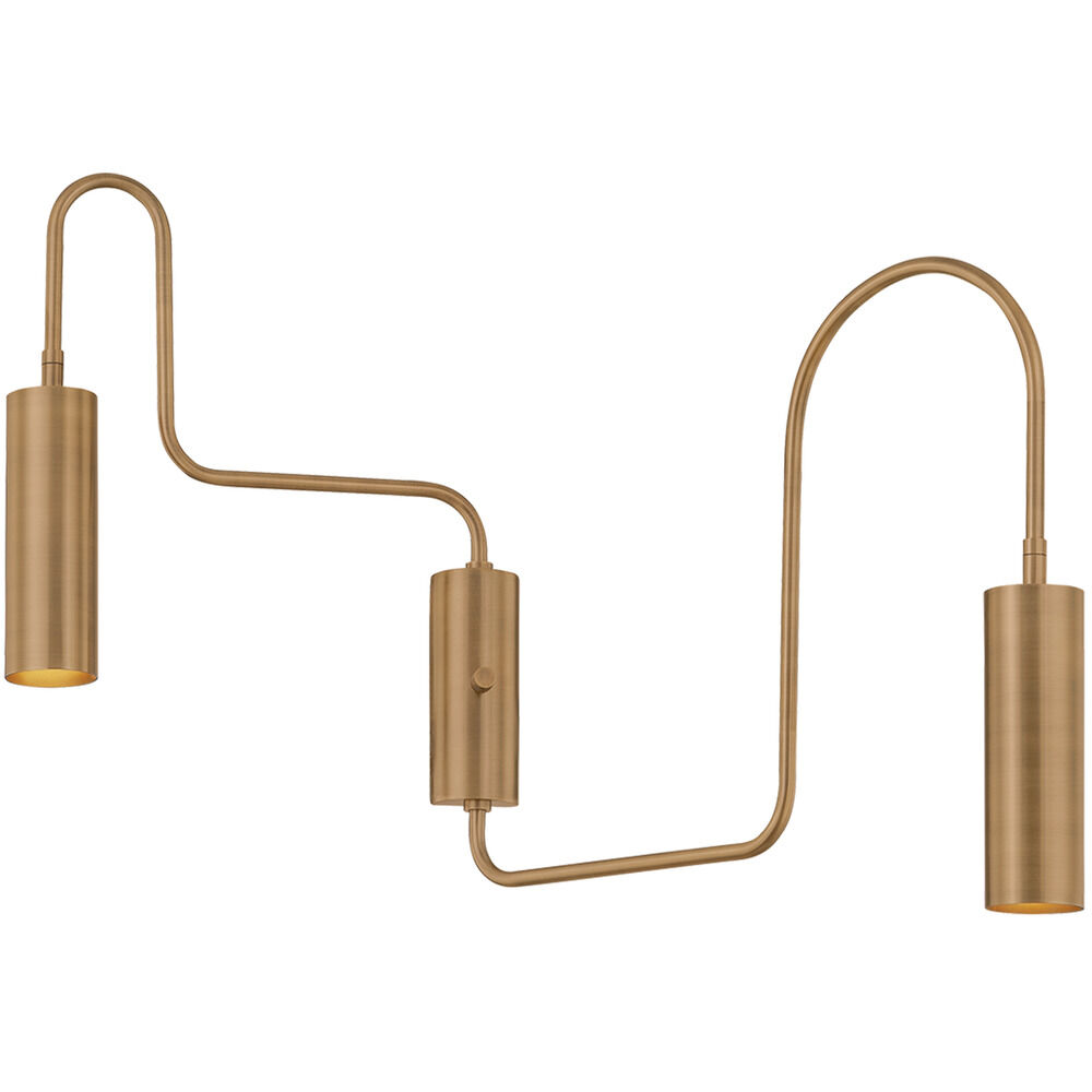 The Lark sconce exists at the intersection of modern and playful, eye-catching and functional. It establishes its own graphic vernacular with rotating arms bent into arcs and right angles. The two large cylindrical heads can be positioned to direct light as needed. Available in Patina Brass or Bronze finishes, Lark brings character to any space.
