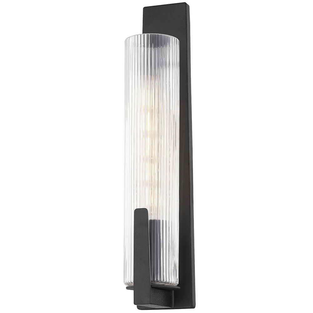 A ribbed glass tube shade rests on a slim backplate specifically designed for a gem box creating Malakai's slender silhouette and straightforward design. This modern sconce is an obvious choice for the bath and the Vintage Gold Leaf and Forged Iron finishes pair well with many interiors.