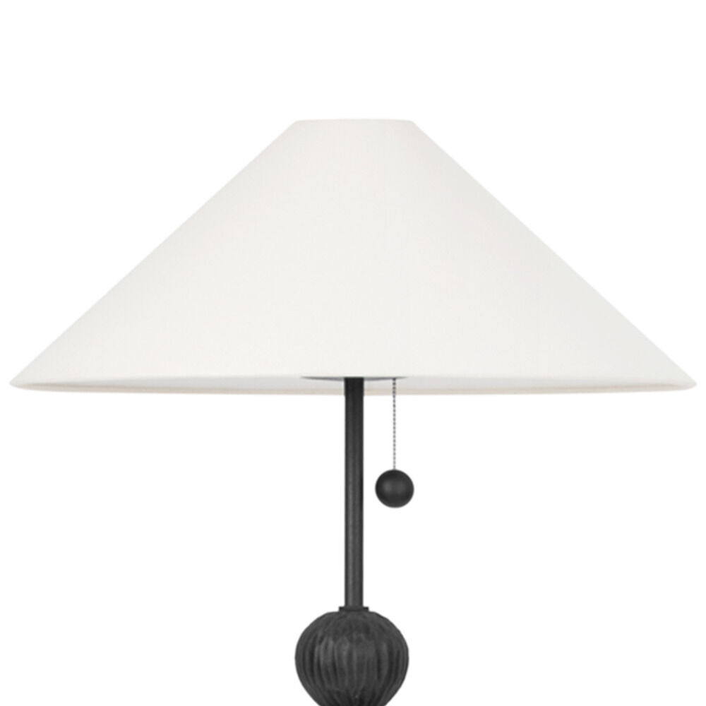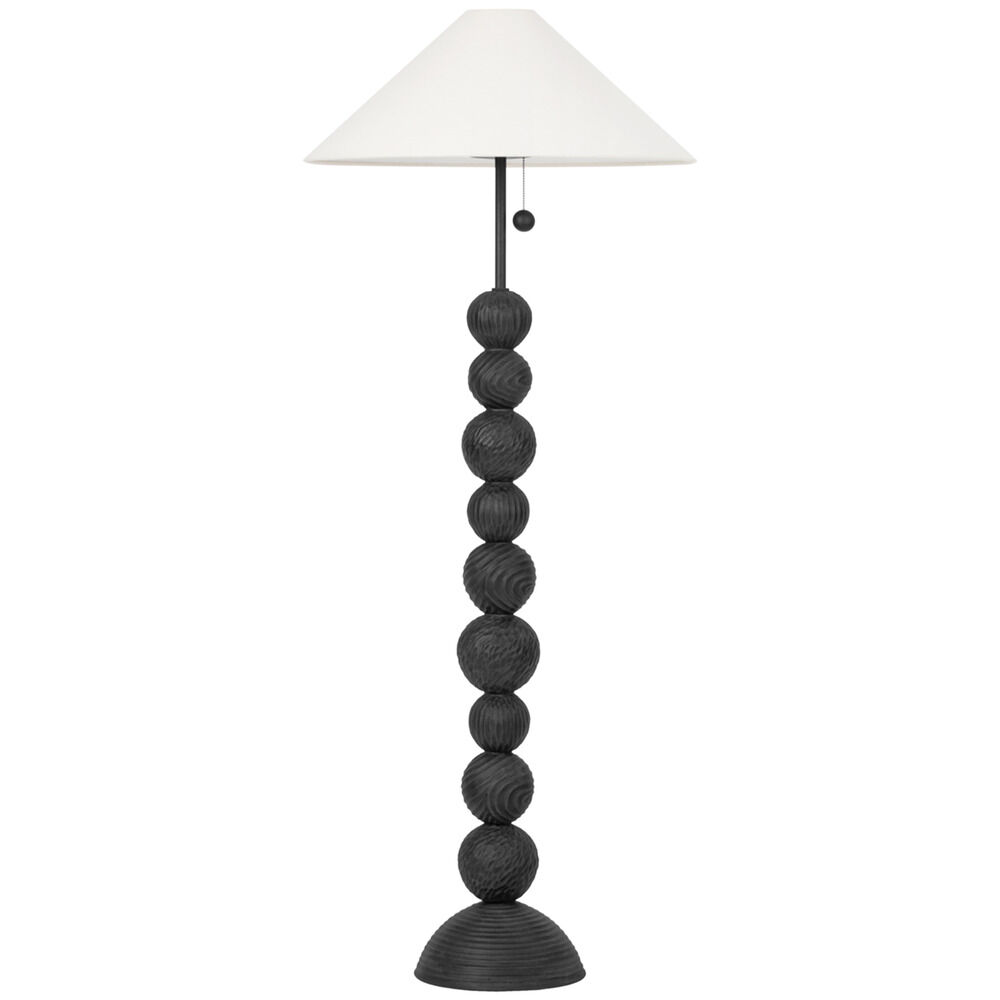 A totem-style design with rhythmic energy, Miela conceptually aligns with folk art aesthetics. Incised spheres reminiscent of carved wood are modeled from Black Motif Ceramic, resulting in a striking, polished appearance. Miela is further enhanced by an oversized pull chain and frame finished in Forged Iron. The off-white linen shade introduces a clean point of contrast. Part of our Loft and Thought collection. Due to the one-of-a-kind nature of the medium, exact colors and patterns may vary slightly from the image shown.