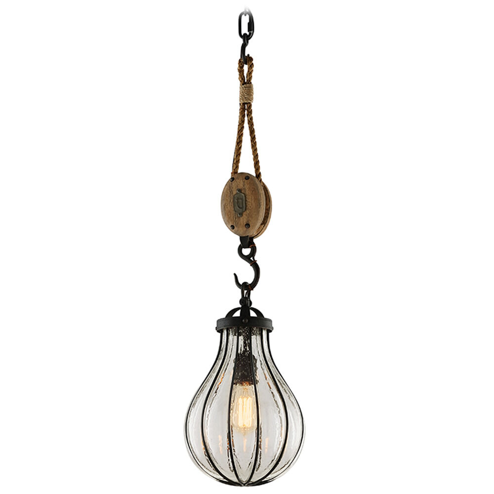 The following are detailed specifications about the Troy Lighting Murphy Forged Iron & Rustic Wood Mini-Pendant Light with Teardrop Shade.