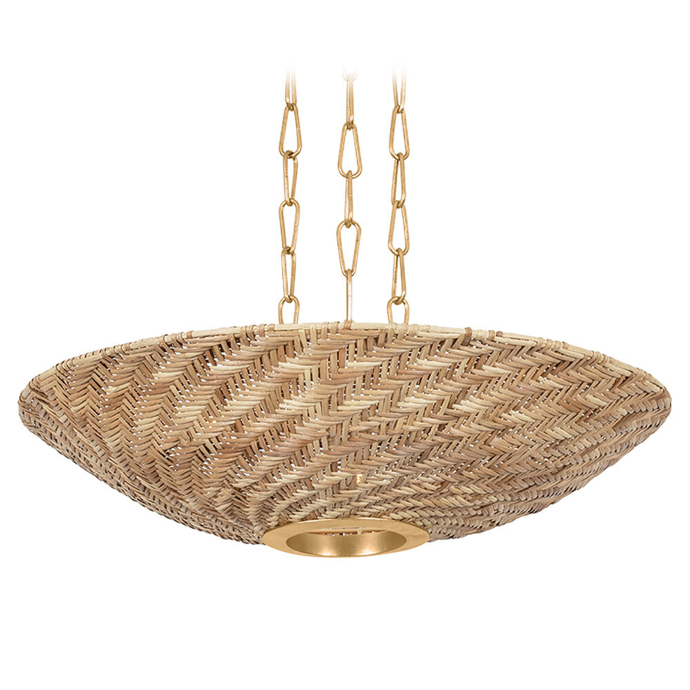 Bohemian vintage gold leaf 3-light pendant light with light natural wicker shade