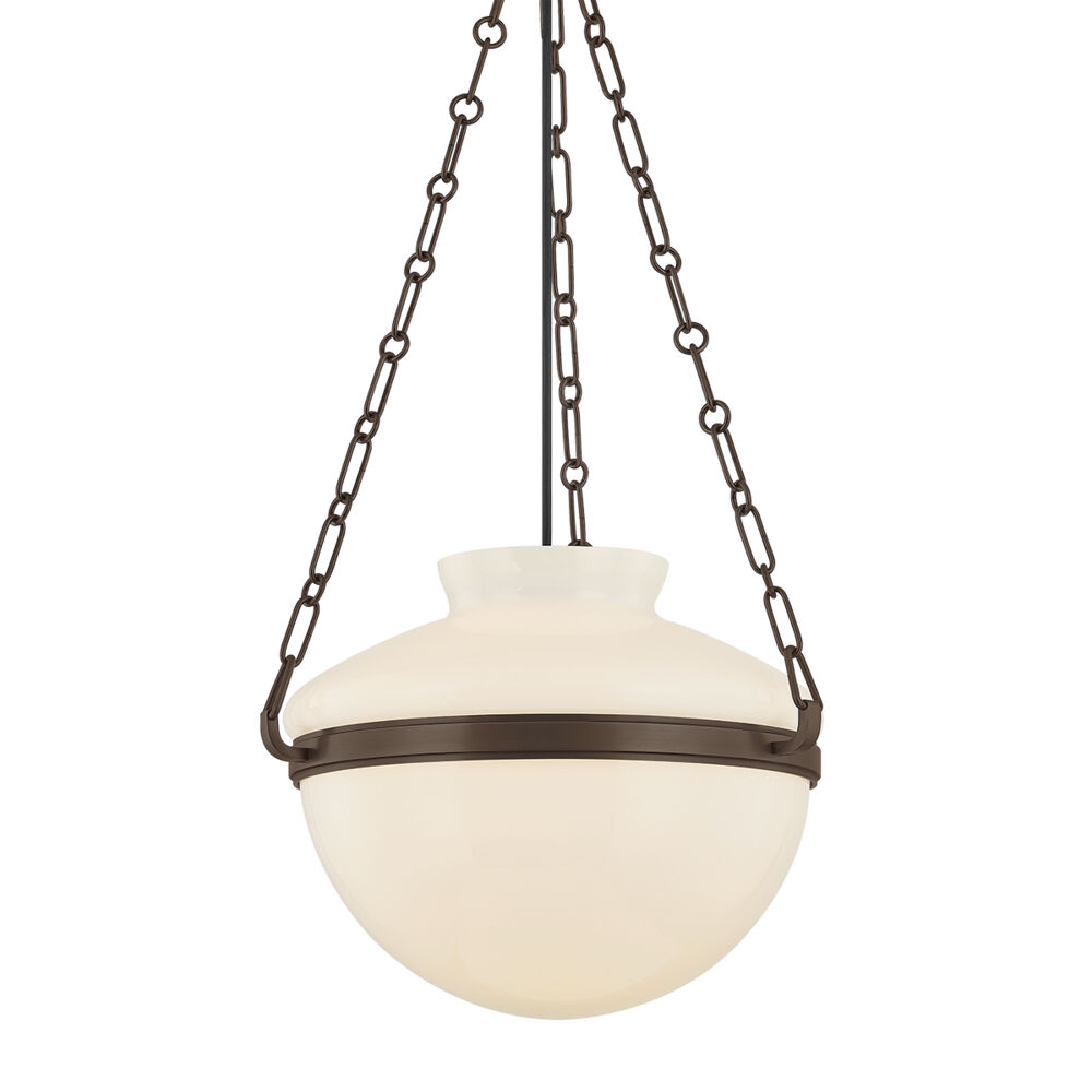 Contemporary / modern bronze 1-light pendant light with glossy opal glossy glass shade
