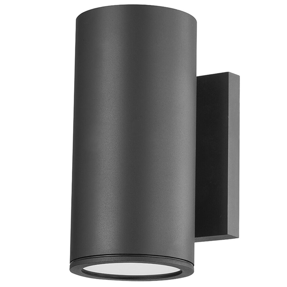 With its smooth, cylindrical shade and square backplate, this exterior sconce feels modern and architectural. Light flows through the etched glass to wash the wall in a soft glow and provide ambient illumination on walkways. Available in a Texture Black or Texture Bronze finish in one- or two-light options to fit any exterior. One-light fixture is Dark-Sky compliant.