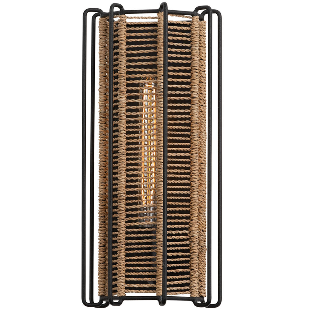 A textured black framework is wrapped in natural jute on the interior to create a modern industrial style that looks rustic yet elevated. The metal frame is vertical and the rope detail runs horizontal forming a dynamic silhouette that feels fresh. The lantern is available in three different sizes to suit any space.
