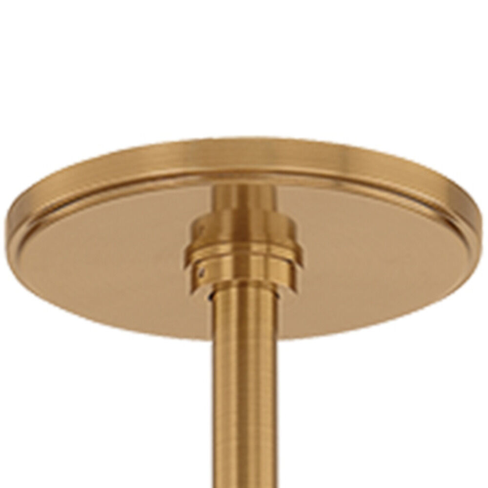 A cluster of thin, broad shades spread across the ceiling in the overscale Rory chandelier. Combined with the warm Patina Brass finish, the wide surface area of the cloud glass shades brings vintage style to an otherwise contemporary design. Whether in its 3 or 6-light iteration, Rory brings an artful ambience to any space.