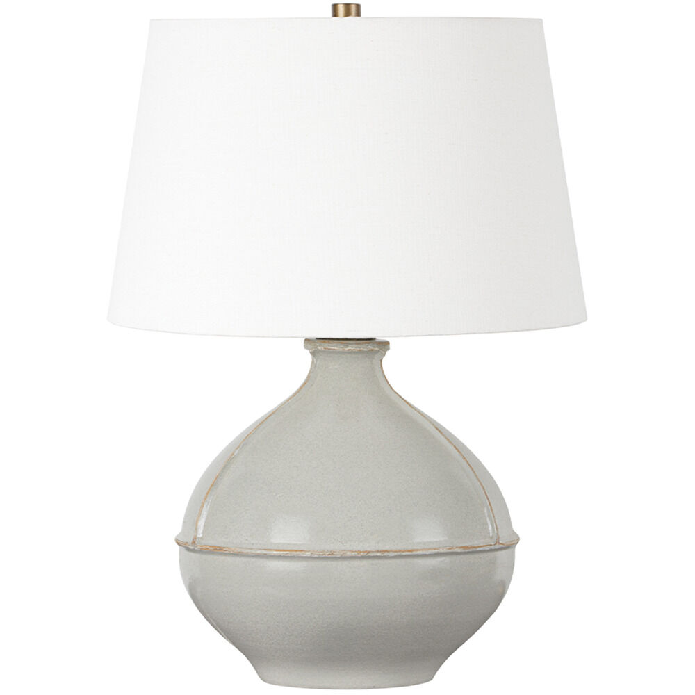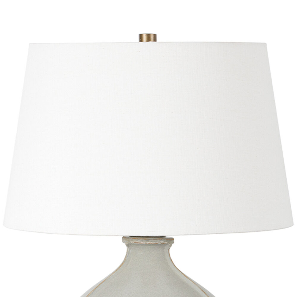Inspired by rustic pottery, this table lamp's beautifully shaped base is crafted of pale sage ceramic giving it an earthy pale green tone. The off white linen shade pairs naturally and casts a soft glow. Raised seamlines and a reactive glaze that allows hints of the natural ceramic to peek through, give the fixture a hand-thrown, crafted feel. Part of our Lauren Liess collection.