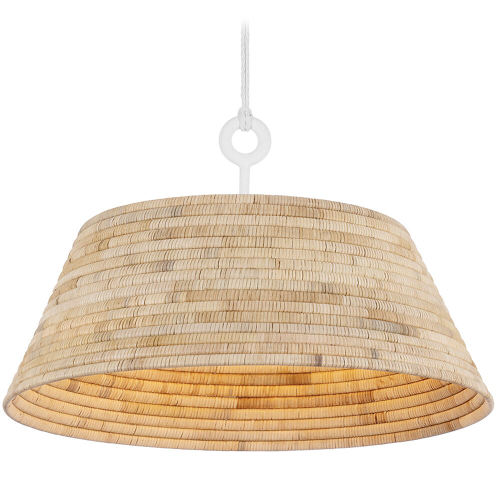 Inspired by artisanal handicraft, this pendant features an elegant woven natural shade paired with robust forged metalwork. The basket-like shape of the shade, with its uniform weave and simple top loop, recalls nautical motifs. Sequoia is available in two sizes with two finish options, both of which complement the rattan's natural earthy tones. Due to the one-of-a-kind nature of the medium, exact colors and patterns may vary slightly from the image shown.