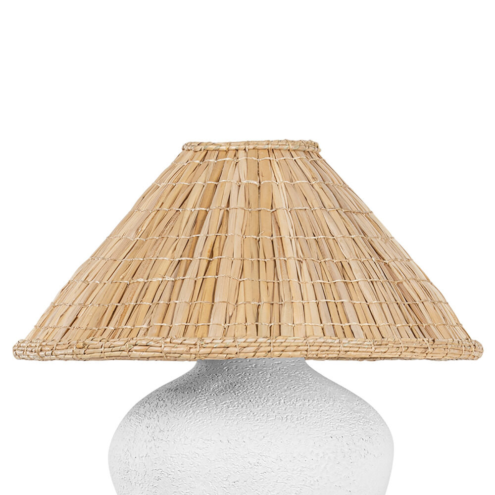 The raw finish and distinctive indentations of the ceramic base of Solon give it a delightful found object quality. By contrast, the woven grass shade provides a refreshing touch with its sharp taper and organic texture. Casting light downwards across the tactile clay, Solon celebrates the marriage of enduring natural materials, textures, and tones. Due to the one-of-a-kind nature of the medium, exact colors and patterns may vary slightly from the image shown.