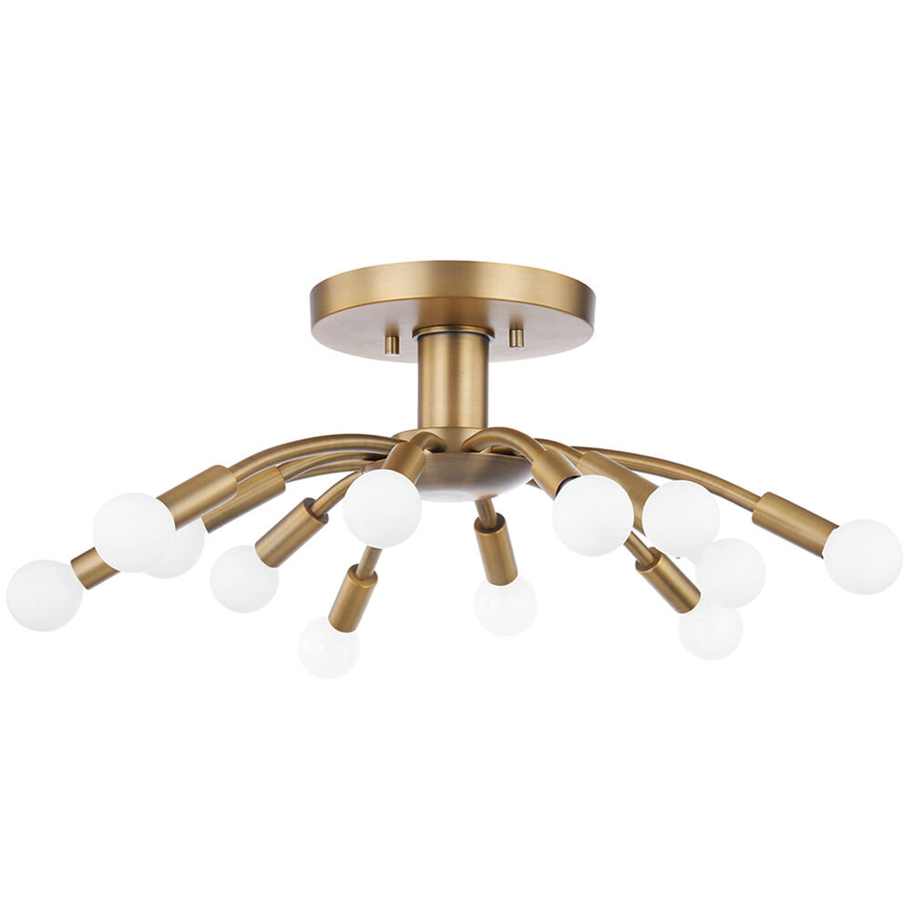 With twelve bulbs and over two feet in diameter, Tristan fills a room with both light and style. Sleek arms of varying lengths spill from the center of this sprawling fixture showering a space with light. Go for an aged look with the Patina Brass finish or keep things clean and sleek in Soft Black.