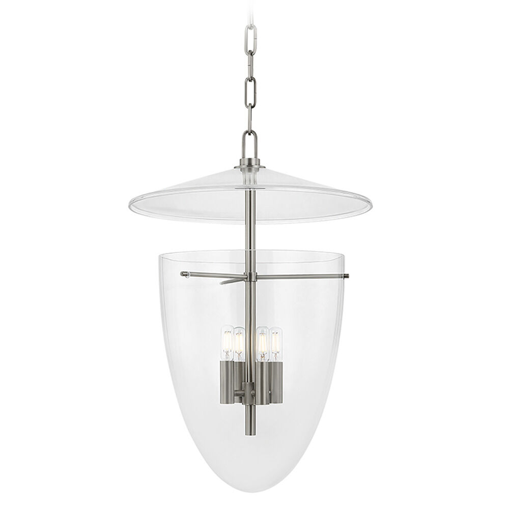 Transitional vintage pewter 4-light pendant light with clear glass shade