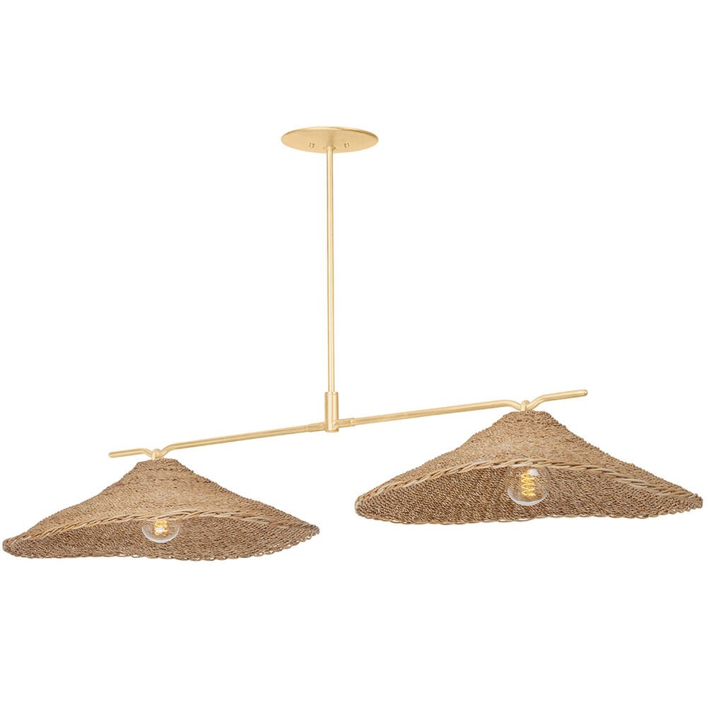 Perfectly imperfect dome shades of woven Lampakanay grass suspended from arms of Vintage Gold Leaf give Valier its rustic yet refined quality. Minimalist and organic, this tailored, textured design will bring a warm, natural feeling to any space.Due to the one-of-a-kind nature of the medium, exact colors and patterns may vary slightly from the image shown.