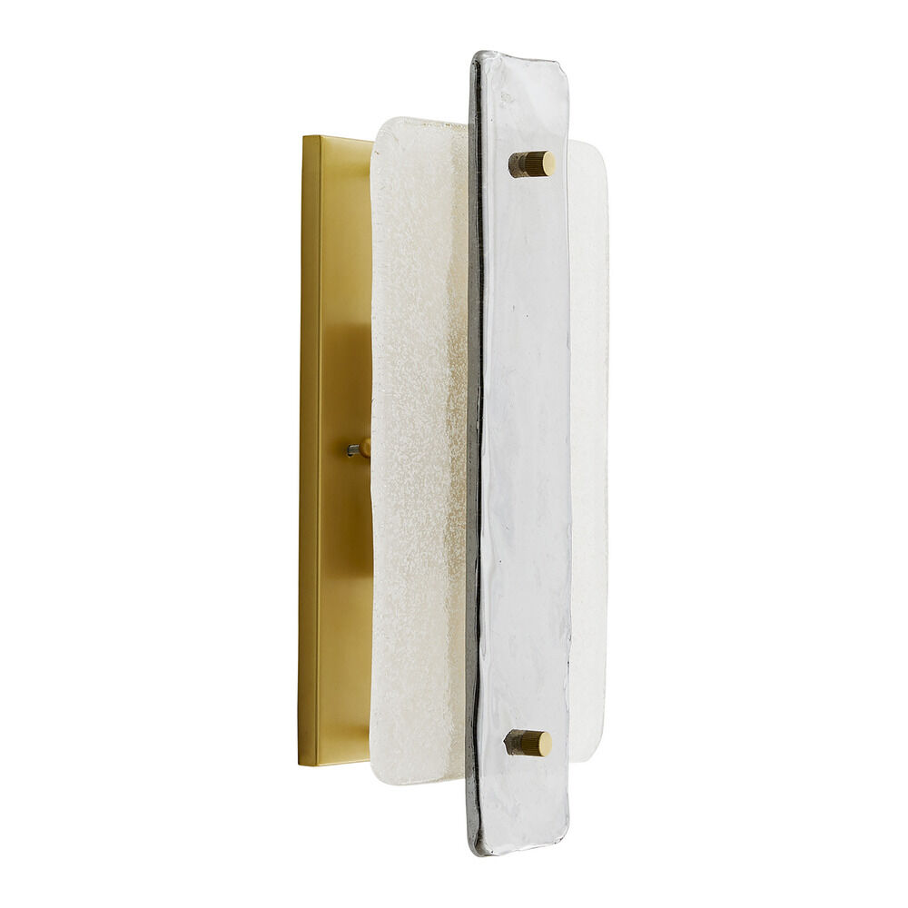 Enhance your space with the Uriah Sconce by Arteriors Home. The Uriah features a thick slab of Seedy slumped glass in a Smoke Luster finish. This glass cascades down the front of a Clear seedy glass wall. Finish will vary. The Uriah is rated for use in damp location.