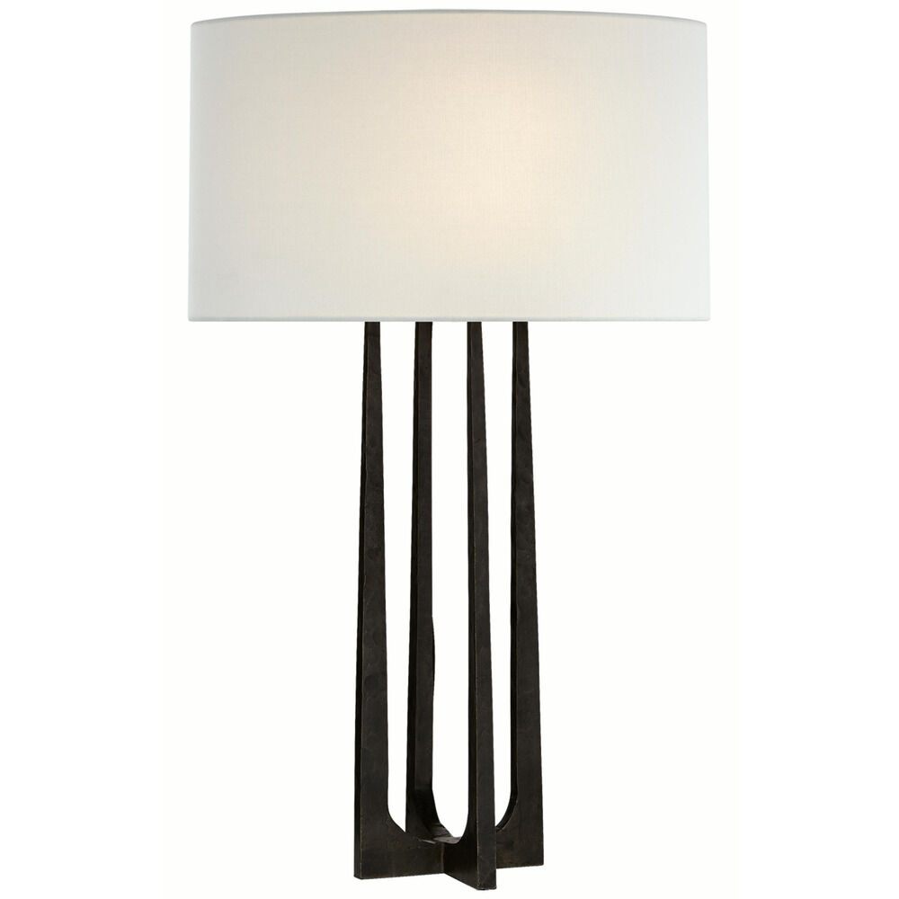 Contemporary / modern aged iron 1-light table lamp with linen fabric shade