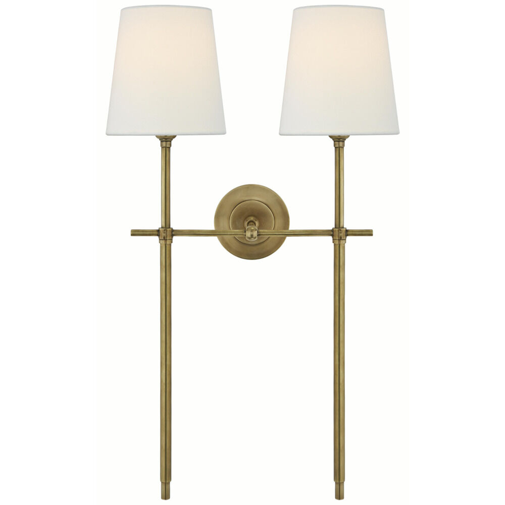 Contemporary / modern hand-rubbed antique brass 2-light sconce with linen fabric shade