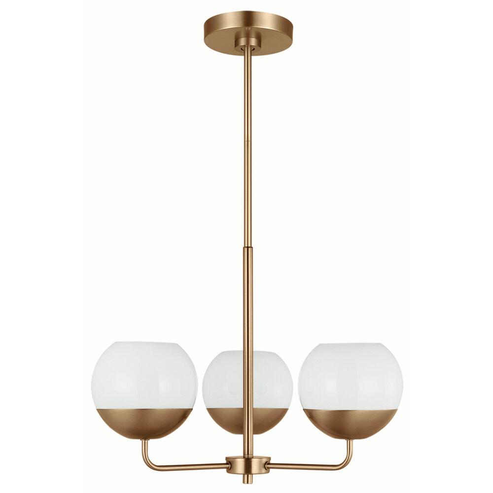 Contemporary / modern satin brass 3-light chandelier with milk glass shade