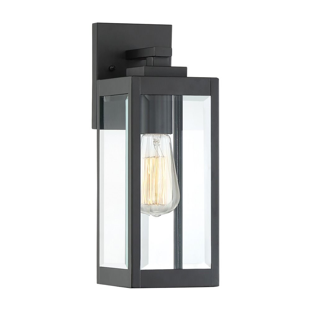 This Craftsman Outdoor Wall Light from the Quoizel Lighting Westover collection is inspired by the handmade look of early 20th-century lighting. Clear beveled glass and an earth black steel housing complement each other with geometric lines. Adding Edison bulbs will enhance the vintage vibe of these 1-light outdoor wall sconces. TheyÂ’re wet location-rated for hanging on siding, open patio walls and doorways. Many other Arts and Crafts outdoor lights are available at Destination Lighting - call us to learn more.