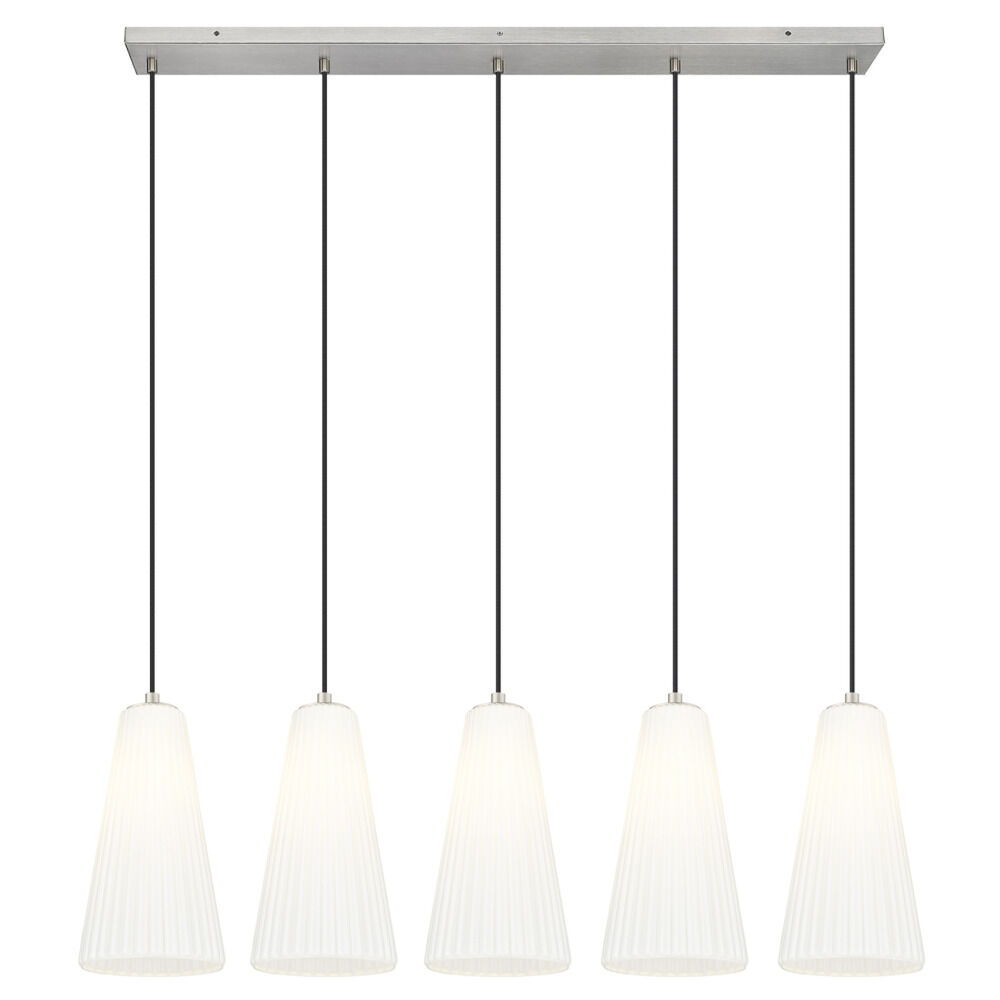 Contemporary / modern brushed nickel 5-light pendant light with frosted,fluted white glass shade