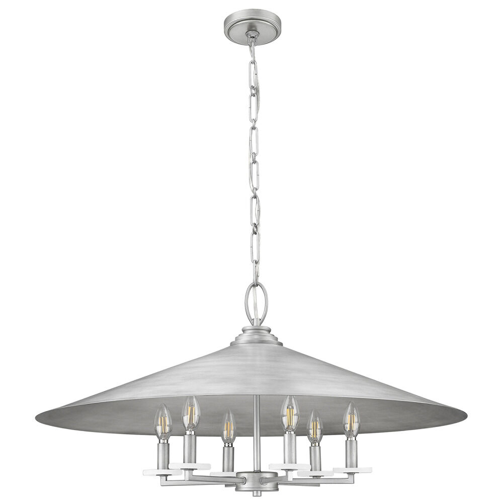 Vintage / retro / industrial signature pewter 6-light pendant light with signature pewter metal shade